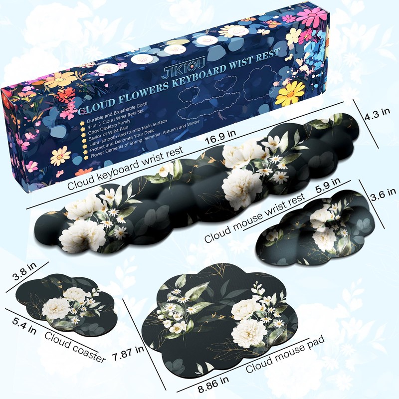 JIKIOU Cloud Wrist Rest Keyboard, Cloud Keyboard Wrist Pad Set with Comfortable Cloth, Cute Arm Rest for Palm Support, PC/Gaming Desk Accessories/Office Setup/Computer Hand Cushion Peony