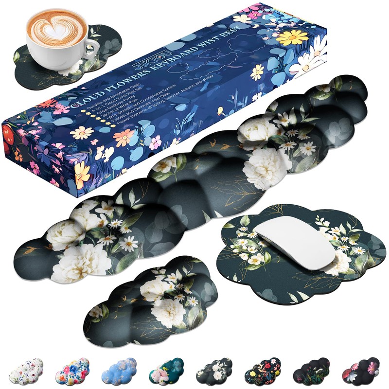 • ✔【4-In-1 Cloud】The box included a keyboard wrist, mouse pad, mouse rest and cup pad, and the cloud-shaped pad is very unique&good-looking and enhances the user's experience, designed for daily working or gaming. This stylish gift box is a perfect game desktop accessories gift for family, friends and teachers