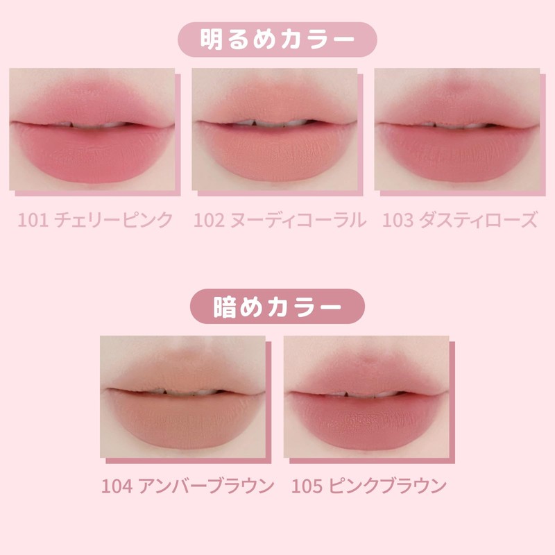 - 102 Nuddy Coral: Nuddy Coral that blends into the lips. Provides a natural blood color