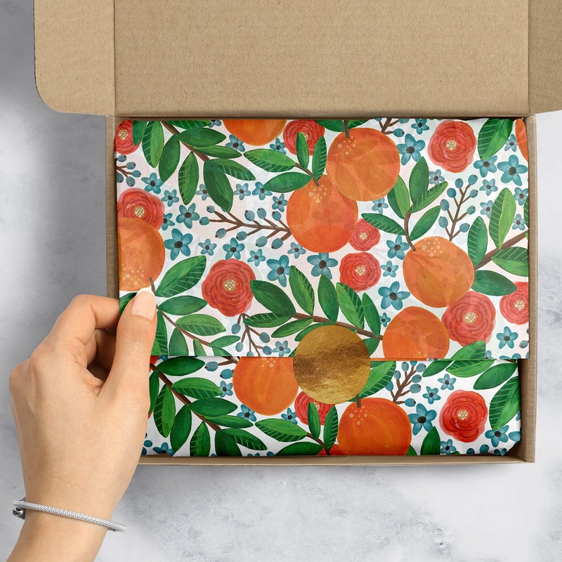 Jillson Roberts 20" x 30" Printed Floral Gift Tissue, Mandarin Grove, 24 Folded sheets