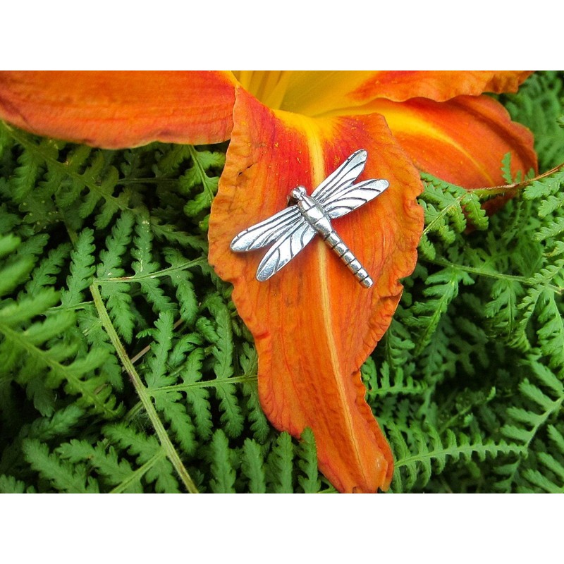 Dragonflies spend most of their lives in the larva stage (up to three years, depending on the species). The adult, winged stage only lasts a few weeks. Mating is the primary reason for their winged stage. So when you see a winged dragonfly, you know it's toward the end of its lifespan. Sad but true. Handcast in solid, lead-free pewter, each of our pins is an original three dimensional sculpture signed by the artist, Jim Clift. Handcrafted in our studio in Coventry, RI, our pins are 100% US made."