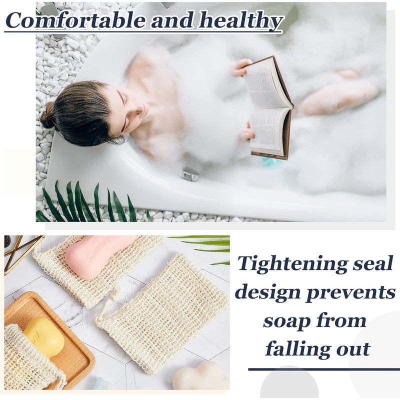 - 【Material】: The sisal bag is made from natural flax and it is durable and environmentally friendly. It is also soft for human skin. You don't need to worry about pain or hurt if you use it washing hands, cleaning face or body.