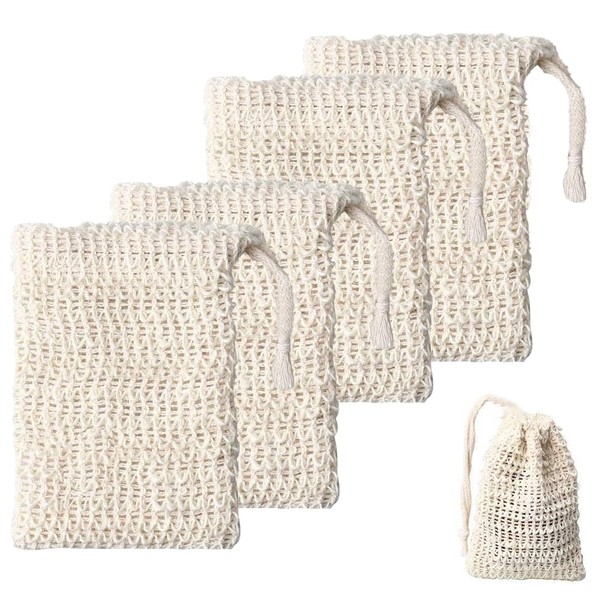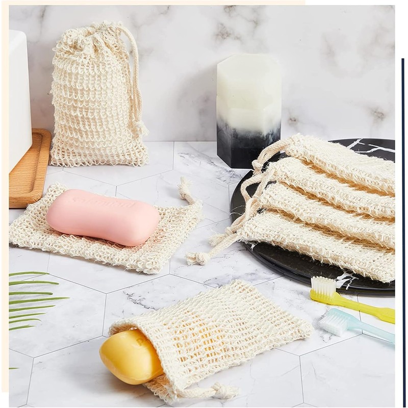 JIMCOM 5 Pack Sisal Soap Bag with Drawstring Natural Soap Saver Pouch for Shower Bath Exfoliation or Massage