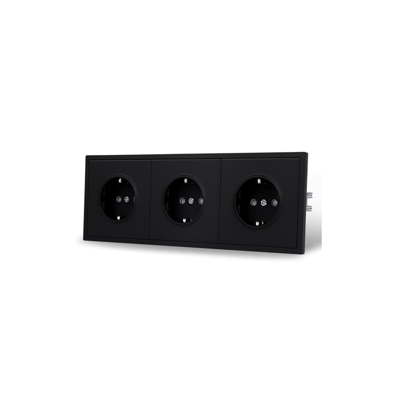 JIMEIDA 3 Socket Black Matt Flush-Mounted Smooth Skin Feel with Plug-In Terminal 16 Amp Socket Wall Socket (Cannot Be Installed Vertically)