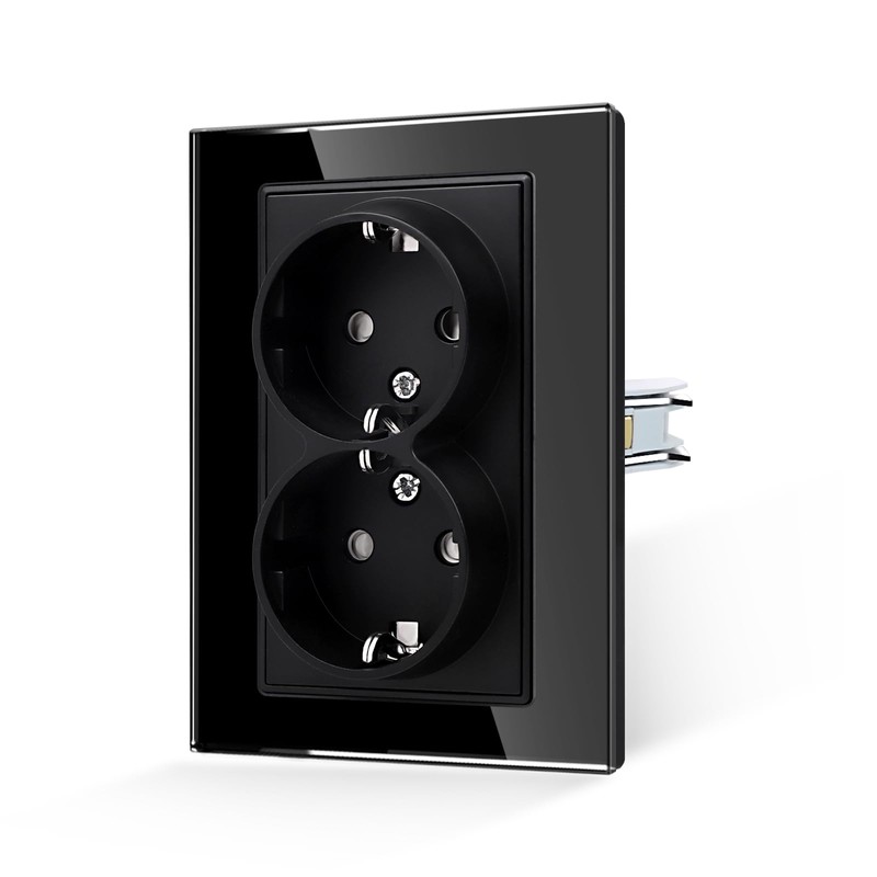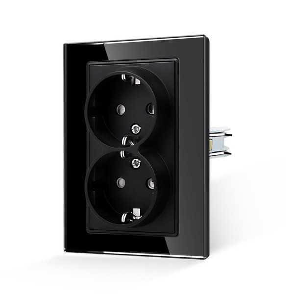 JIMEIDA Double Socket Glass Black with Hook Single 16 Amp Standard Schuko Socket Tempered Glass Panel Protective Contact Wall Socket