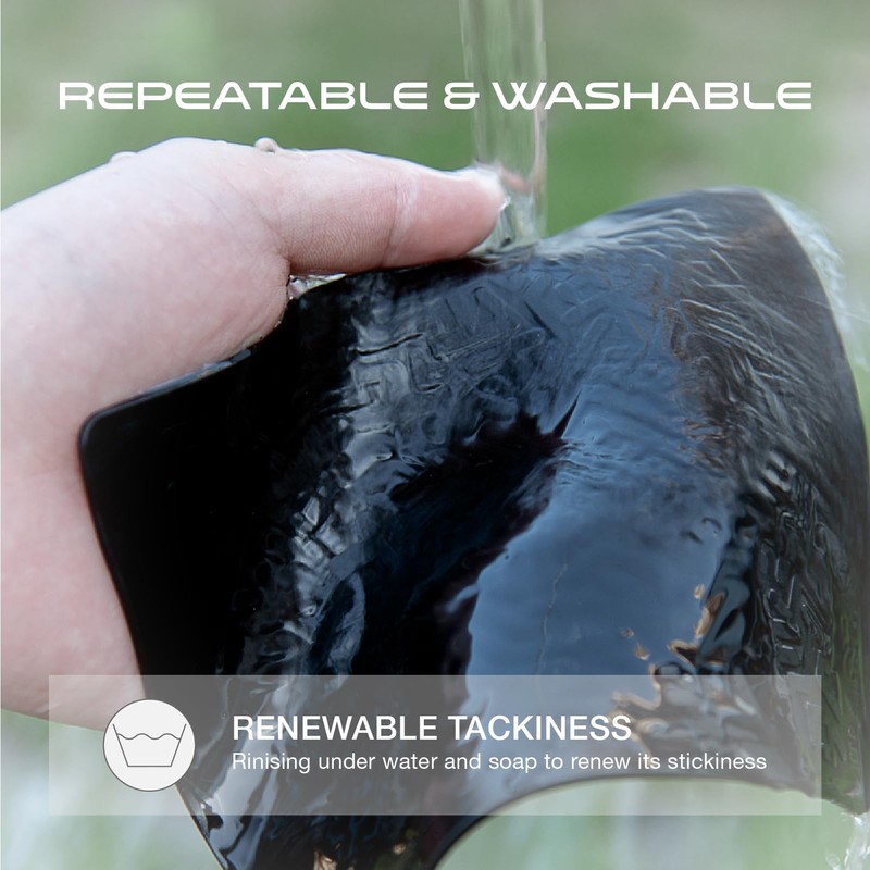 - Reusable & Renewable Tackiness This fixable gel pads can be used for many times, and will not leave any residue or damage to whatever you stuck it on. Rinsing under warm water and soap to clean and renew its stickiness.
