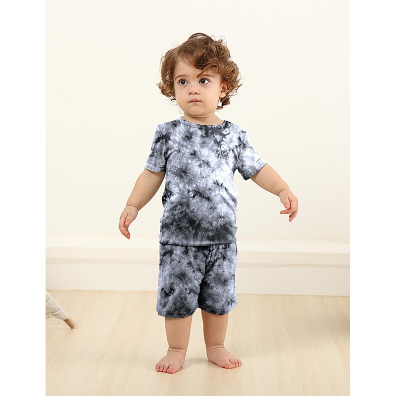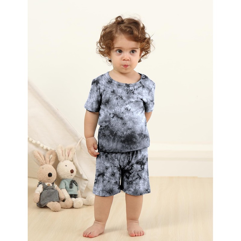 Jimonda Kids Soft Rayon From Bamboo Sleepwear Short Sleeve Boys Girls Pajama Outdoor 4-Piece tops&shorts Casual sets Tie Dye PJ(Navy&Grey,4T)