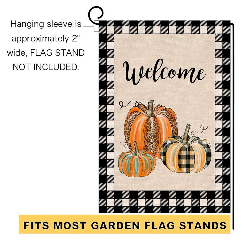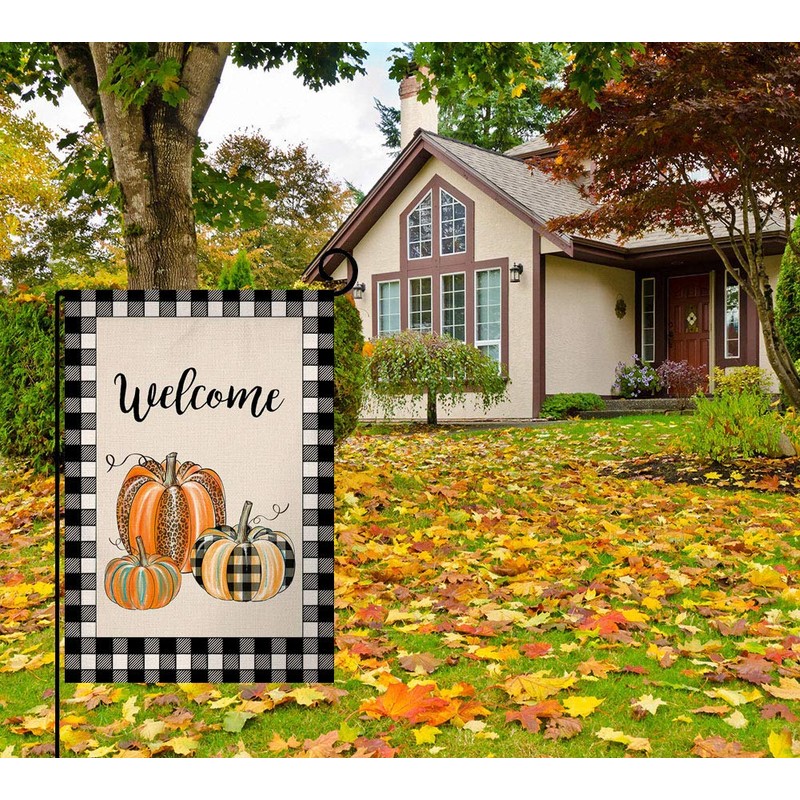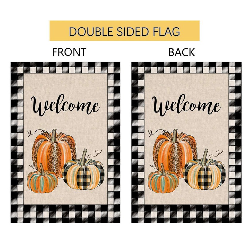 JIMOWANG Buffalo Check Fall Pumpkin Thanksgiving Burlap Burlap Garden Flag Double Sided Outdoor Decorative Yard Flag 12"x18" Porch Patio Banner Flags