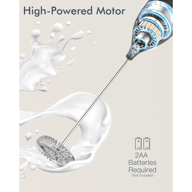 - Make Creamy Frother in Seconds: The powerful handheld milk frother with high-speed rotation of food safe stainless-steel whisk and BPA free shaft allows you to easily create a rich, creamy froth in just 15-20 seconds.