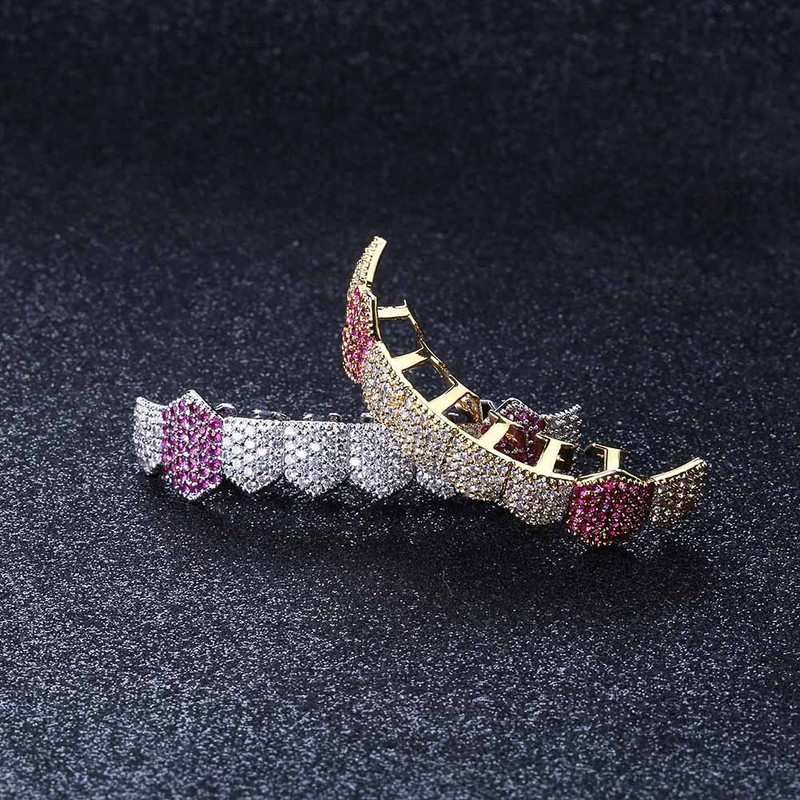 - PACKAGE--The no drill grillz and bottom pink grillz come with 2 silicone bars(1 set)and the bling CZ grillz teeth come with 4 silicone bars(2 sets). GOLD PINK and WHITE GOLD PINK only come with bottom grillz and 2 set silicone bars which look so fashionable and elegant for women. The Instructions for use are included in every package.