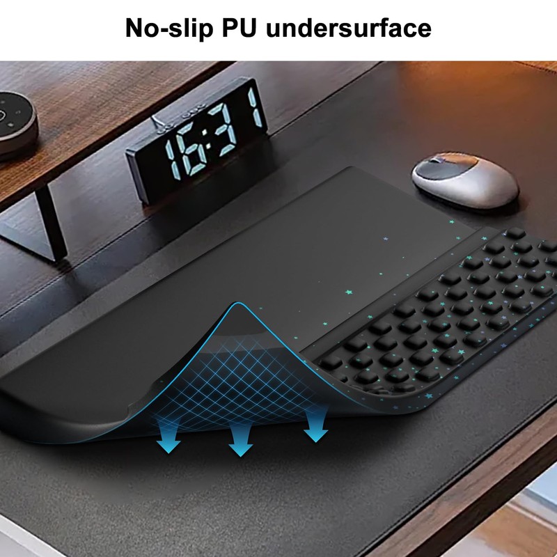 • 【Lycra Fabric Covering &Non-Slip Pu Base】Made of PU material, provides higher stability than the rubber base, which effectively prevents it from sliding on the desktop.The keyboard pad can remain in place even during intense work or gaming
