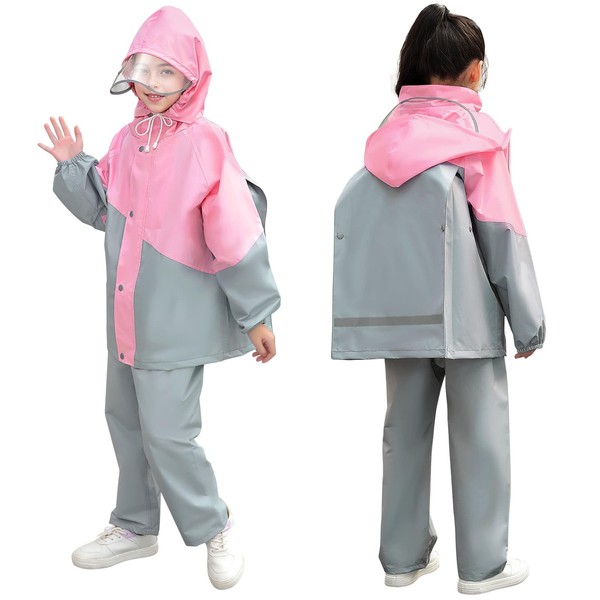 - 【Waterproof Material】This rain suit is made from nylon material, waterproof, windproof, quick-drying. Taped seams keep stay dry. Light and thin design allows it to be worn alone in summer or layered with insulated clothing in spring, autumn, and winter. Waterproof top and bottoms, children can wear them together if needed or separately. Comfortable to wear and does not restrict movements.