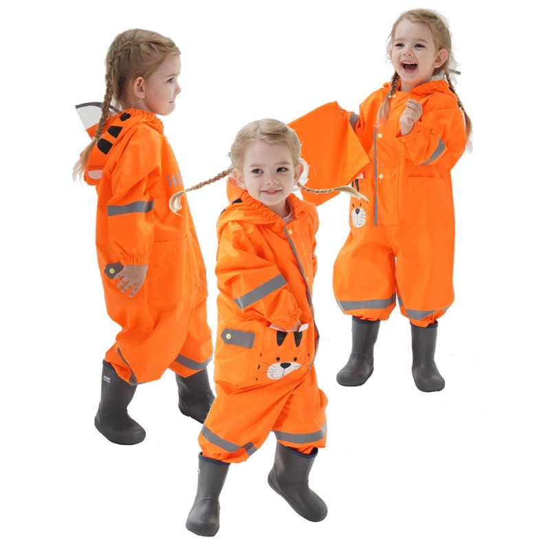 - 【Cool Design】This super cute animal raincoat is our Team's new 3D cartoon design, it has longer cut to help keep the upper legs and bottom dry, whatever the weather. Besides, this adorable raincoat has elasticated cuffs and reflective article, which increases safety. The soles of the feet are equipped with elastic bands for easy fixation. Your baby girls and baby boys will prefer rainy days, and it is an ideal rainy outfit for boys and girls.