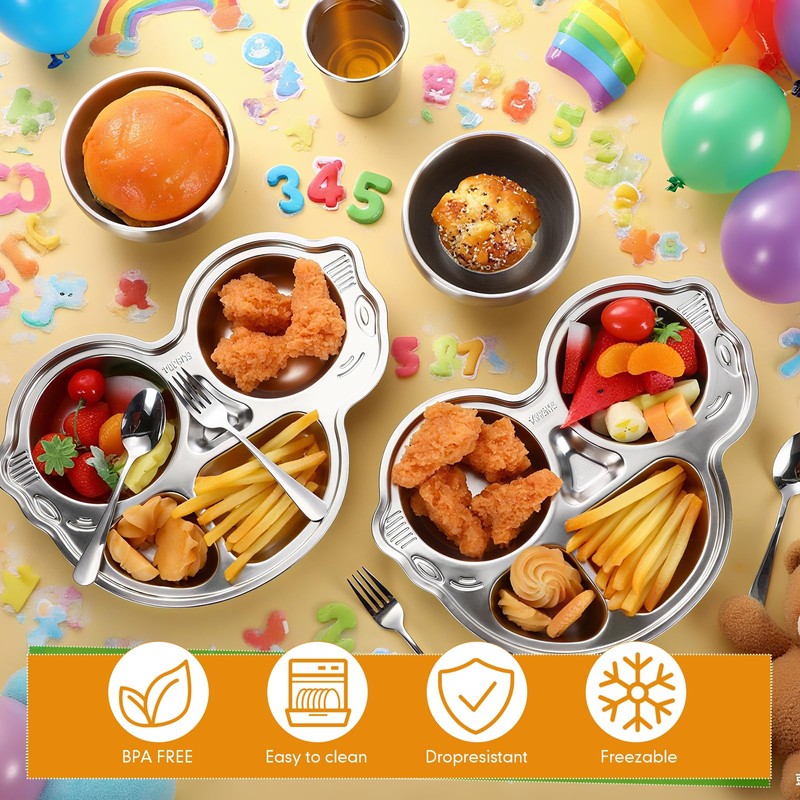 - Fun Car Design: the stainless steel plates is designed in a fun car shape, creating excitement amongst children and picky eaters; The cute and interesting design makes mealtime a game and encourages kids to eat their meals