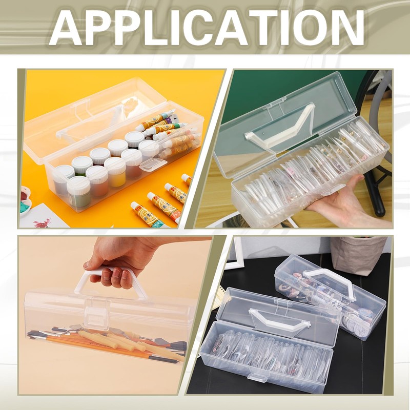 JINGHANGER Pack of 2 Trading Cards Storage Box with Handle Transparent Plastic Playing Card Box Storage Container Box for Sports Cards (30 x 9 x 8 cm and 34 x 10 x 9.5 cm)