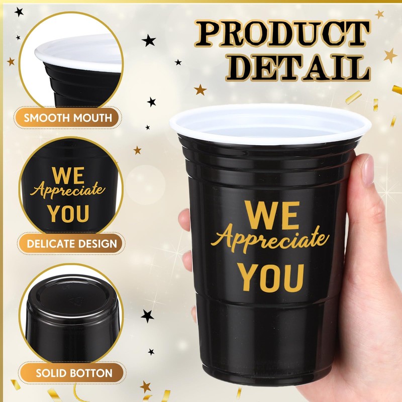 - Package Include: these we appreciation you plastic cups come in a package of 50 pcs in black, making them ideal for teachers employee staff graduation appreciation parties; With thank you text design, these cups will add a festive touch to your party
