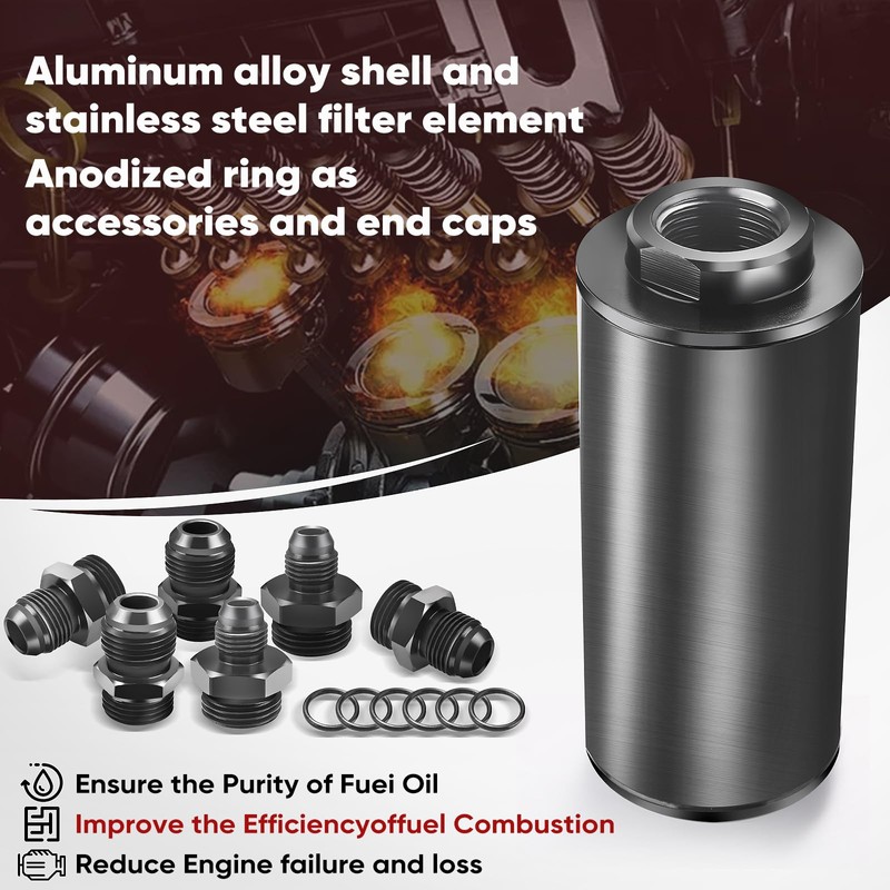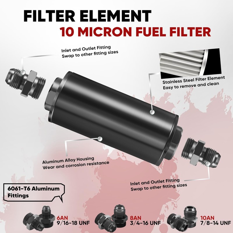- Multi-Fuel Filtration – Effectively filters gasoline, diesel, E85, and more, trapping contaminants 100 microns and larger to protect your engine.