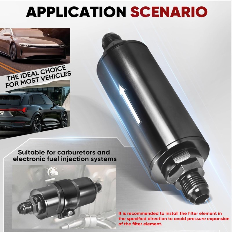JINGTAO88 Inline Fuel Filter 10 Micron with 6AN 8AN 10AN Adapter and 50MM universal bracket clamp