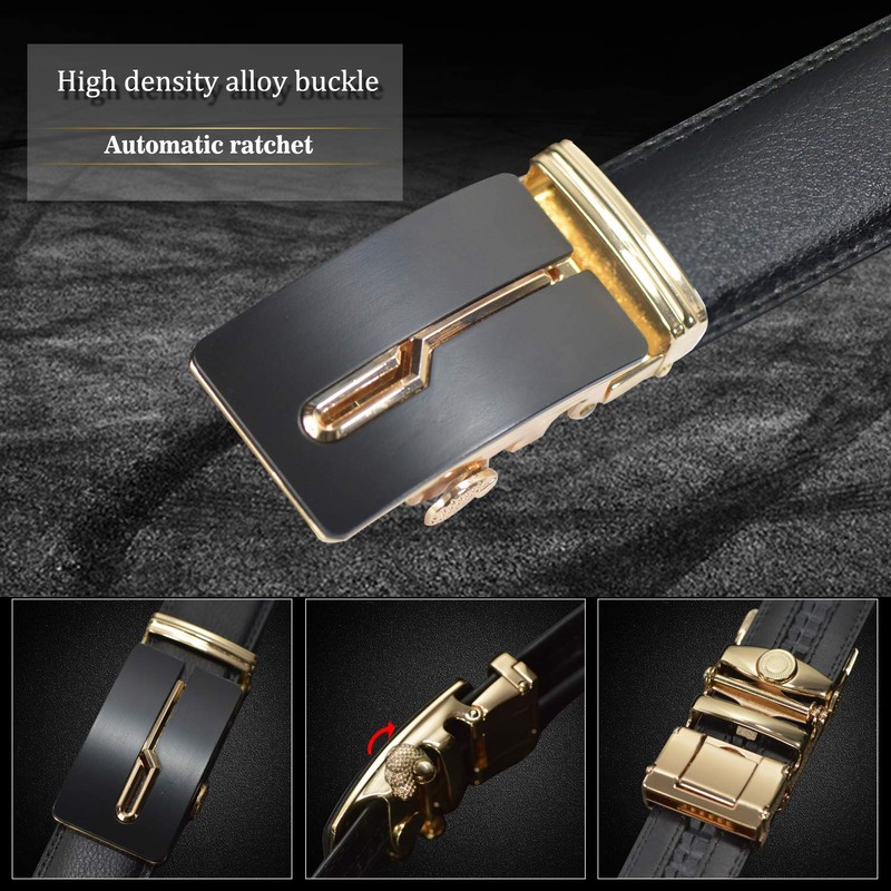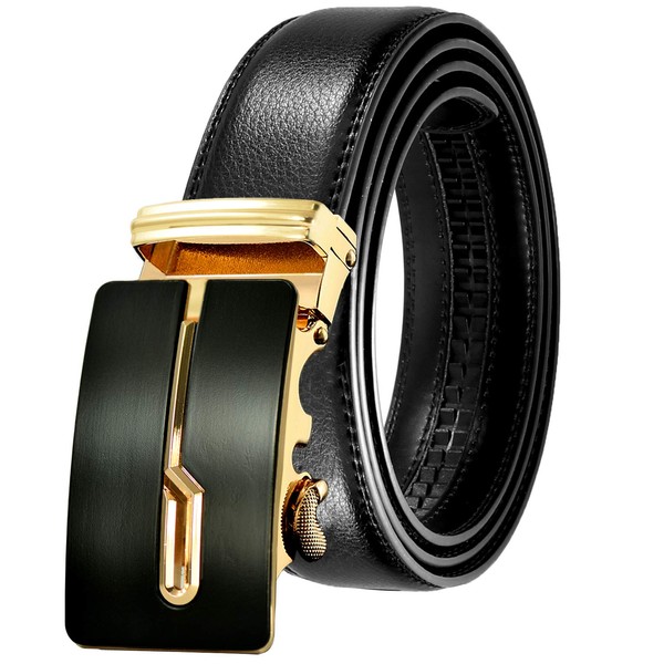 JINIU Leather Slide Ratchet Belt For Men Casual with Automatic Buckle Dress Pant Shirt Micro Adjustable Trim To Fit KT3