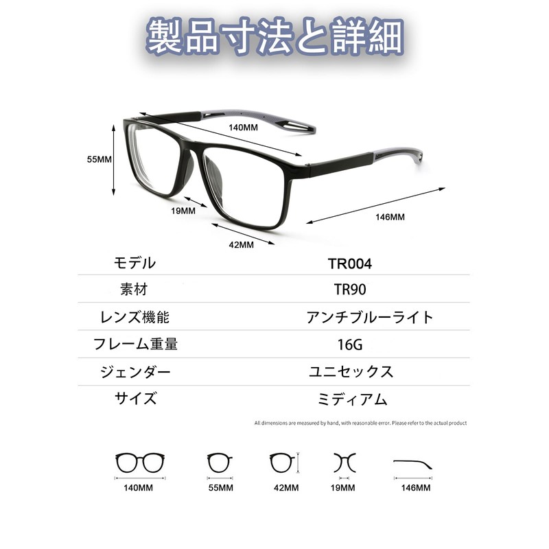 - 【防ブルーライトの超清樹脂レンズ】当製品のレンズは、最先端の防ブルーライト技術を搭載した超清樹脂製です。現代社会に欠かせないスマートフォンやパソコンなどの電子デバイスから発する有害ブルーライトを有効に遮断し、視界を保護します。長時間のデジタルデバイス使用後の眼疲労や目の乾燥感を軽減し、より健康な視覚体験を提供します。