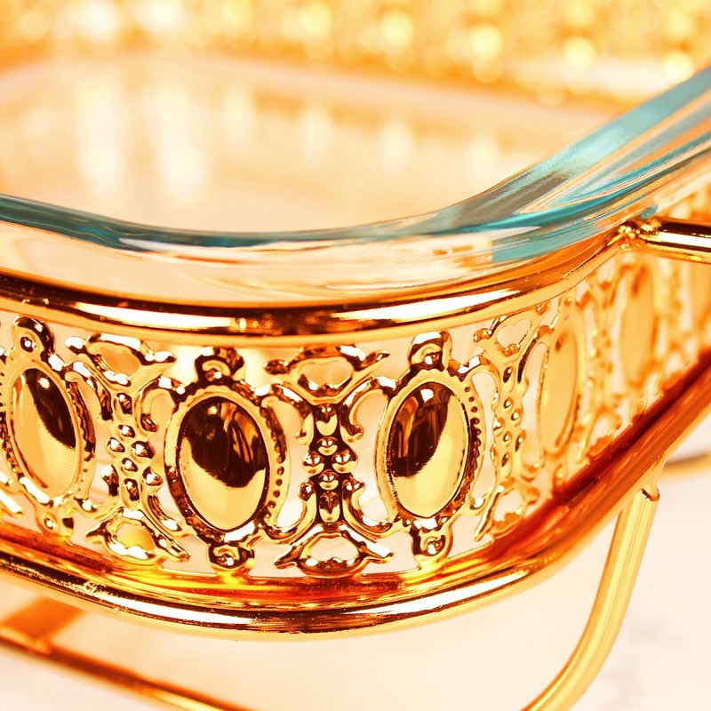 - Tempered Glass - The tempered glass can go directly from room temperature into a preheated oven, heats evenly for consistent results, and resists stains and does not absorb food odors or flavors. Glass Baking Dish Can also be used alone, The Golden rack is equipped with small tea light candle holder that can be heated (the heating fuel is purchased by yourself). 2-in-1 Glass Baking Dish You can serve two flavors of casserole or lasagna at the same time, a variety of savory dishes, baked goods, and more.