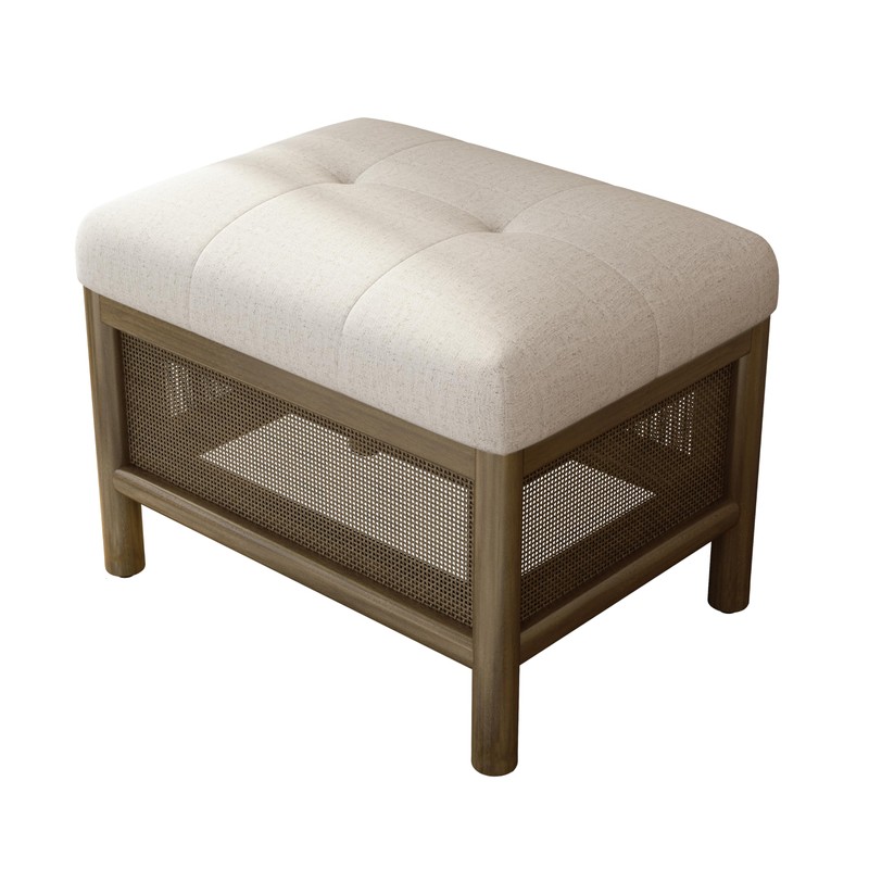Jintop 21.5" Pouf Ottoman,Linen Upholstered Bench,with Cane Base,Elegant Rectangular Soild Wood Frame Foot Stool Ottomans w/Breathable Fabric,Extra Seat for Living Room,Entryway,Bedroom,Walnut