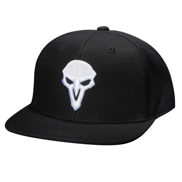 - THE WORLD NEEDS HEROES - Black snapback hat featuring Reaper mask embroidered on front of cap; Overwatch logo embroidered on back
