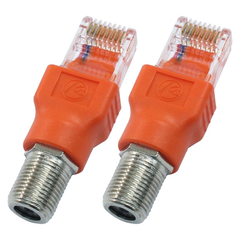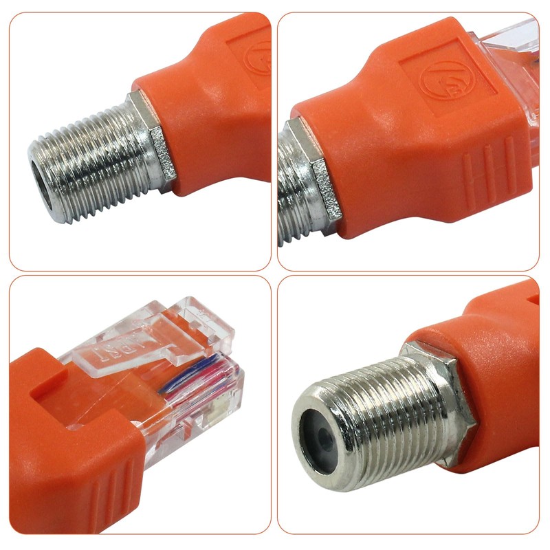 Jiozermi 2 Pcs RF to RJ45 Converter Adapter,Coaxial to Ethernet Adapter Coax Rf F Female to RJ45 Male Converter for Line Tester(Orange)