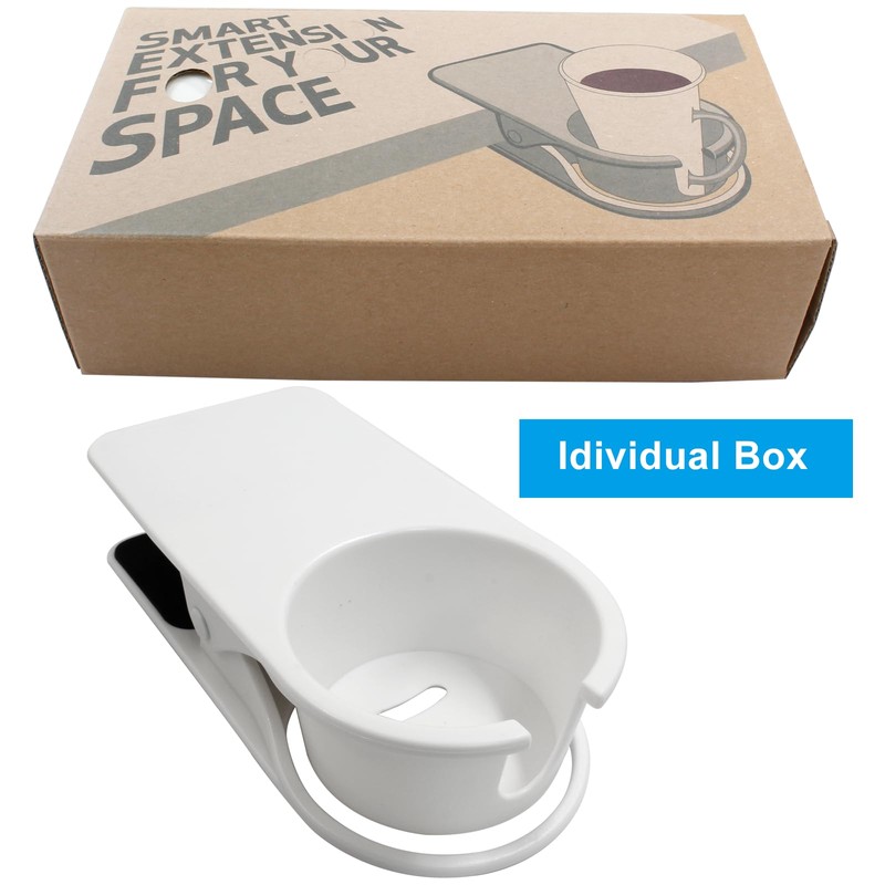 - *Smart & Delicacy --- The cup holder clip has a strong steel spring supply huge pressure, tightly fixed in the desk edge, and makes your drink securely in a place. And, the cup holder has a small hole on the bottom which is super convenient to charge your phone anywhere. This holder clip fits cups that with handle, but not for goblet