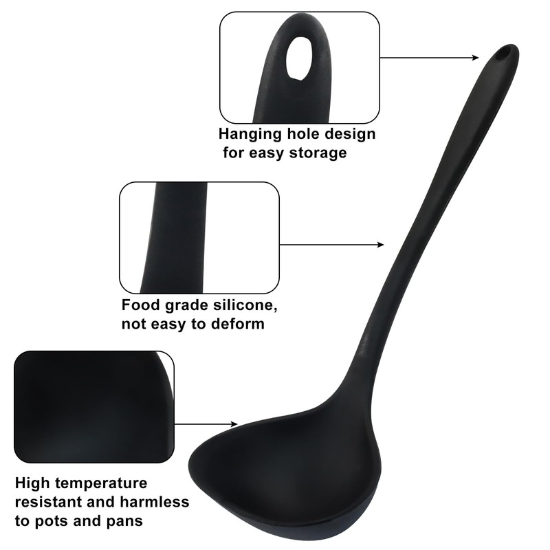 - Protect Your Kitchen Ware: Say goodbye to scratches and damage with the Silicone Soup Ladle. Its soft, non-abrasive silicone head is gentle on all cookware surfaces, including non-stick pans, pots, and ceramic dishes. This ladle spoon is not only functional but also protects your investments, ensuring they remain in pristine condition.