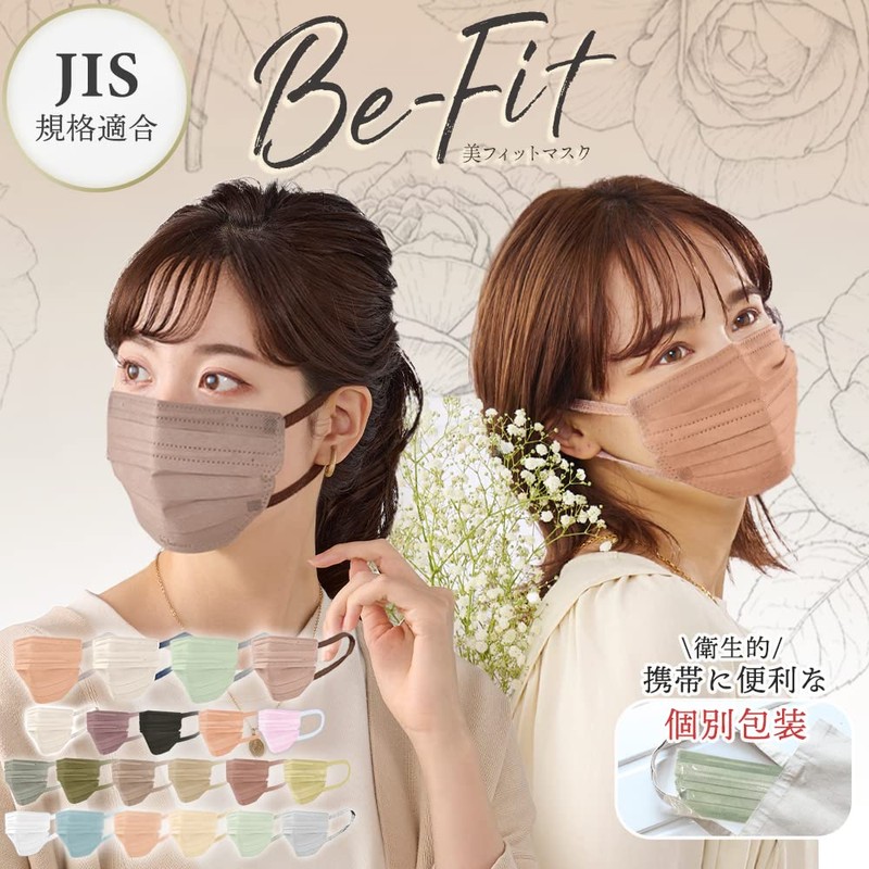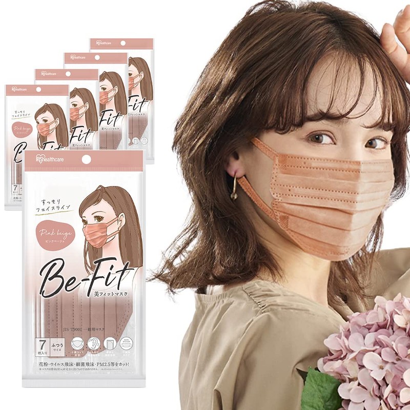 [アイリスオーヤマ] 【JIS規格適合品】 35枚セット マスク 不織布 プリーツマスク ふつうサイズ 個包装 カラーマスク 美フィットマスク 秋用マスク チークマスク 血色マスク 7枚入り PK-B7MPB ピンクベージュ