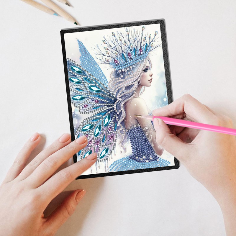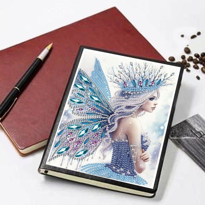 JISHSHAY Diamond Art Notebook Journal Diamond Painting Note Book Gem Art Sketchbook Gem Painting Diary Mosaic Kits for Adults Blank Notebook with Special Shaped 14.5×21cm/5.7×8.26in Elf Fairy
