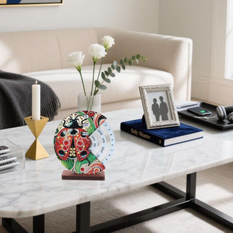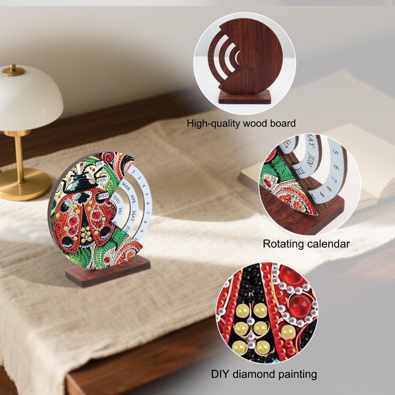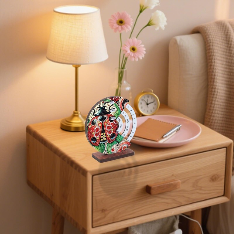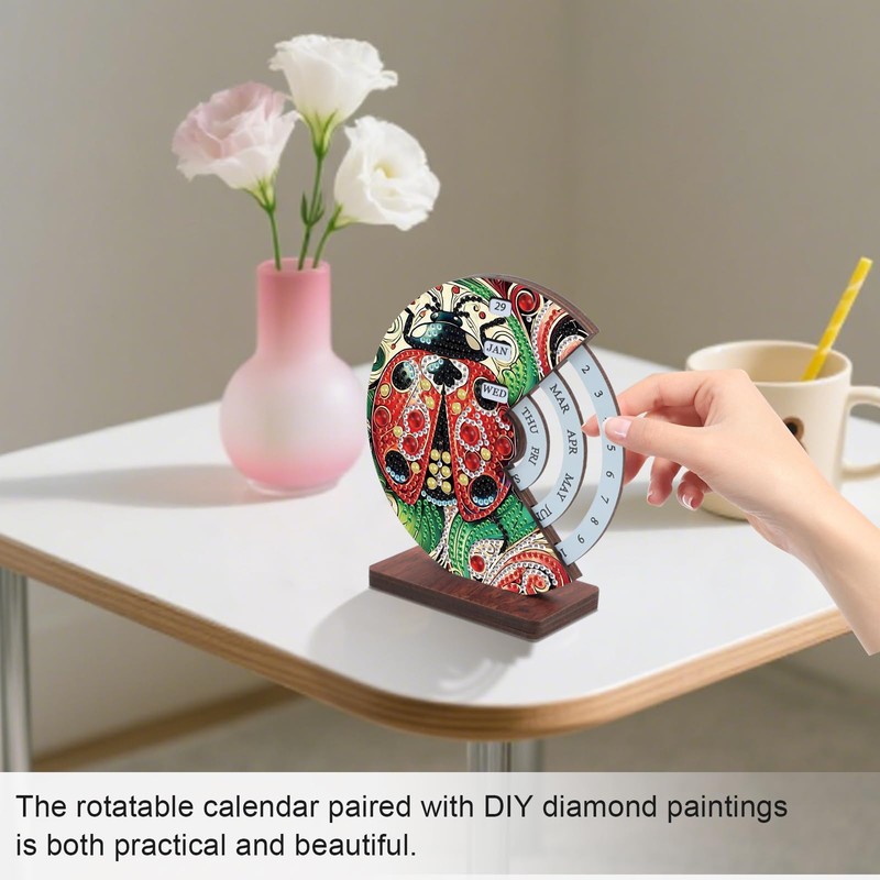 JISHSHAY Diamond Painting Calendar Ladybird Diamond Art Wooden Calendar Animal Gem Art Desk Date Display Gem Painting Desk Date Mosaic Kits for Adults Table Ornaments Embroidery Desktop Decoration