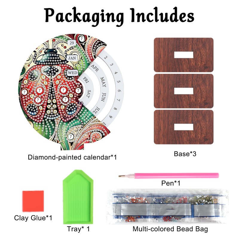 - Package Contents—Each of our diamond art kits for adults calendar/diamond art kits wooden calendar offers unmatched quality and reliable service. Our diamond painting kits perpetual calendar/dimond art paintings desk calendar is equipped with 30% extra diamonds, don't worry about not being able to finish painting because you lost a few diamonds. Each package includes: 1*diamond-painted calendar, 3*base, 1*multi-colored bead bag, 1*clay glue, 1*tray, 1*pen. Size: 14.9*9.5*5.5cm/ 5.86*3.74*2.16in