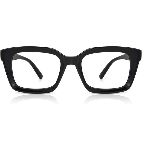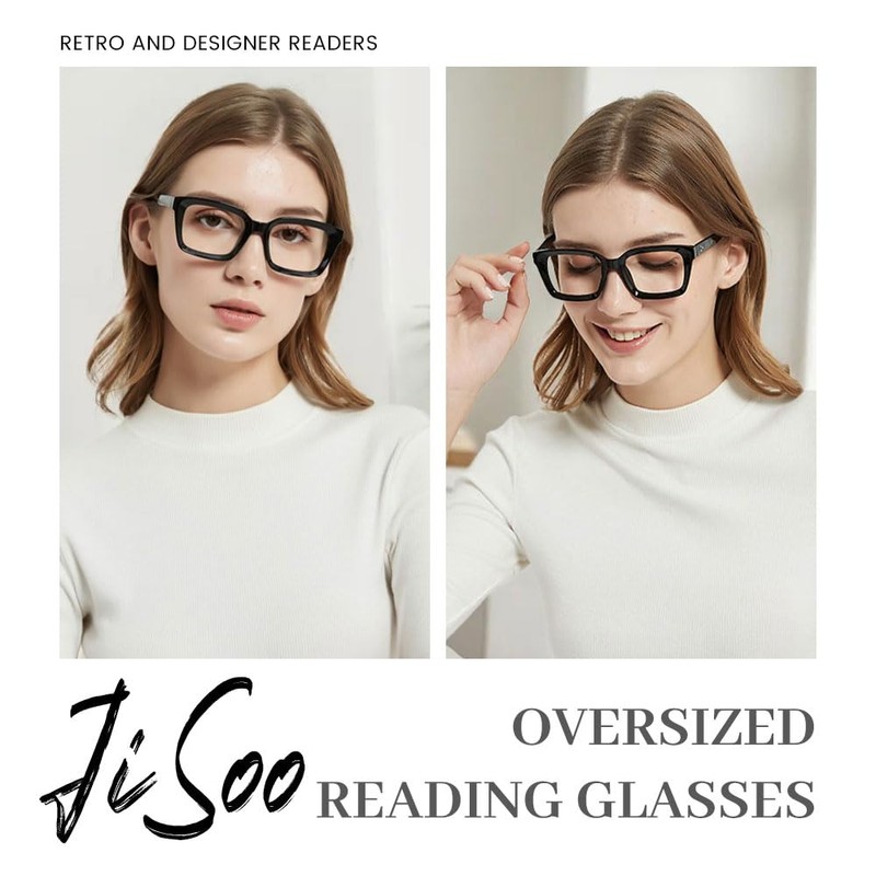 JiSoo Oversized Reading Glasses for Women 1.25, Stylish Designer Readers Large Frame with Spring Hinge, 1.25 Black