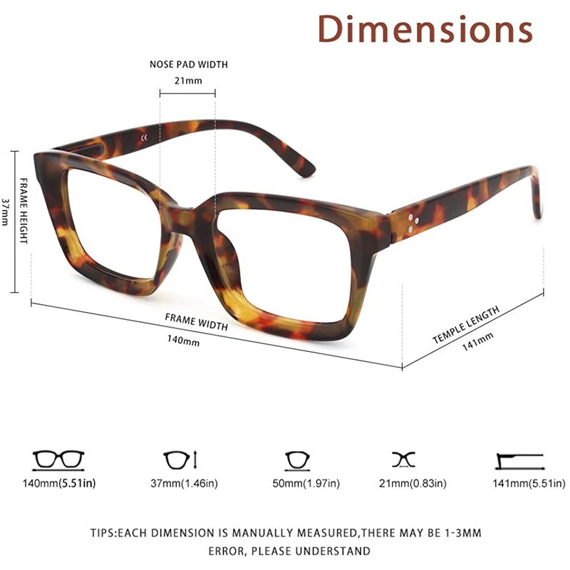 - Size&Service✅: Lens width:50mm(1.97’’), Bridge:21mm(0.83’’), Arm:141mm(5.55’’), Frame width:140mm(5.51’’), Frame height:37mm(1.46’’).If you are not satisfied with the womens reading glasses 2.75 you received, please contact with us for a refund or replacement.