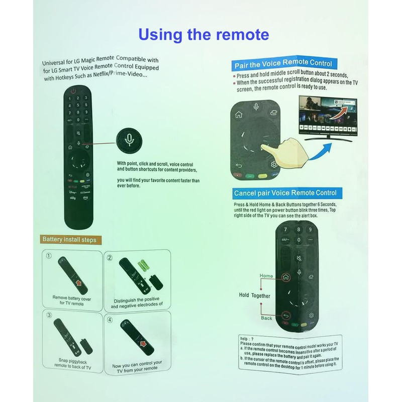 - 【Product Description】 This Voice Magic Smart TV remote control has a wide-ranging compatibility, it compatible with LG OLED 4K UHD Smart TV, OLED 4K Smart TV, OLED Gallery Edition Smart TV, 8K UHD OLED Smart TV, LED 4K UHD Smart TV, MiniLED 4K UHD Smart TV, LED HD Smart TV Series Model and many more. Some knowing models as shown below, Ctrl+F then enter your model you can find the model highlighted (If not find, please kindly email us we will find the remote you need for you).