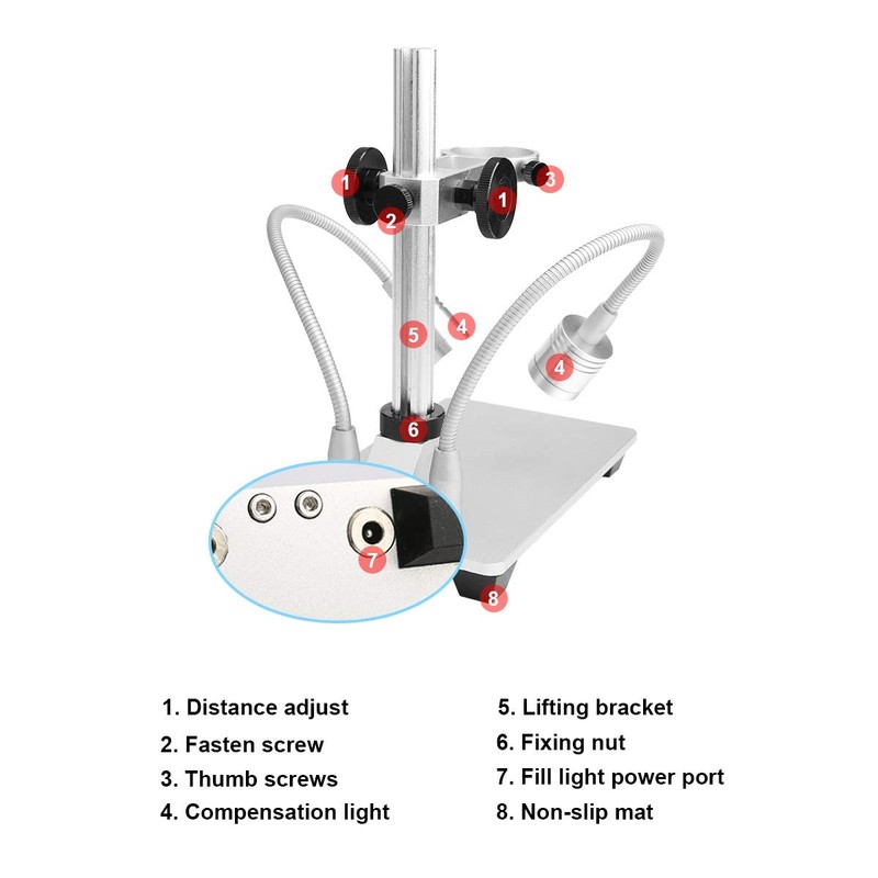 - El pedido incluye 1 soporte de aleación de aluminio, 1 funda de transporte portátil, 2 tubos de luz y 1 cable de alimentación. No incluye microscopios.
