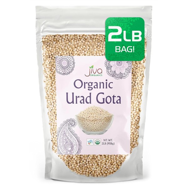 Jiva Organic Urad Gota 2 LB Bag (Whole Urid White) - Vegan, Non GMO