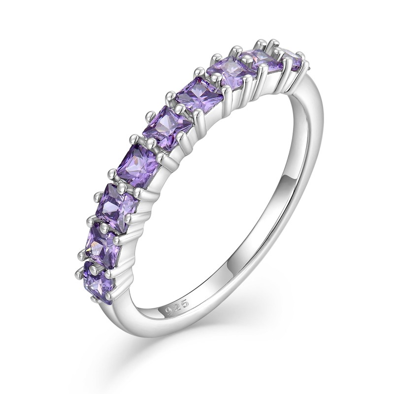 JIWOY Sterling Silver Rings/Princess-Cut Stackable Created Amethyst Ring/Eternity Rings for Women Size 8