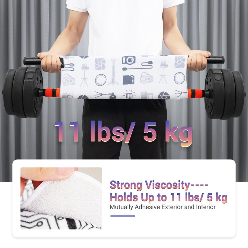 Der Stoff ist äußerst vielseitig und lässt sich unglaublich leicht wickeln und öffnen. Die Außenseite und die Innenseite des Gewebes sind aneinander haftend. So können Sie Ihre Ausrüstung frei in jeder Form umwickeln. Außerdem verfügt es über eine hohe Klebekraft, die auch nach dem Waschen nicht beeinträchtigt wird.