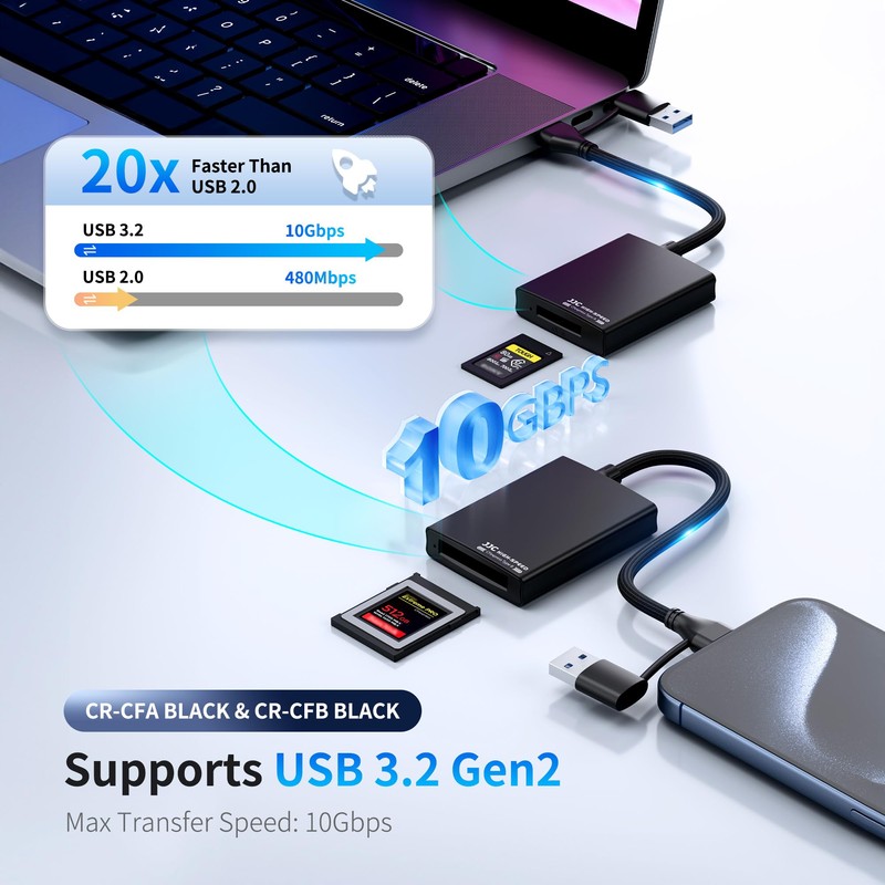 JJC CFexpress Type A Card Reader Writer, USB 3.2 Gen2 USB-C, Transfer Speed up to 10Gbps, Compatible with Android, Windows XP/Vista/7/8/8.1/10/11, Mac OS, iOS System Computer Smartphone Laptop