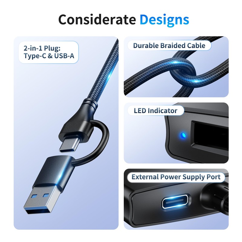 - Features USB 3.2 Gen2 and USB-C ports, compatible with smartphone, computer, laptop, tablet, iPad and more devices with USB or USB-C port
