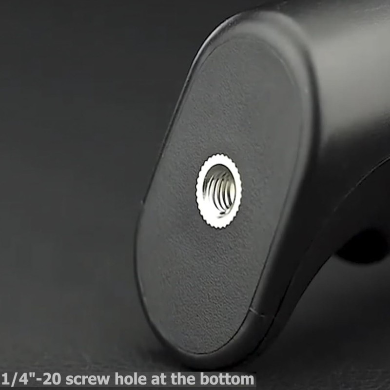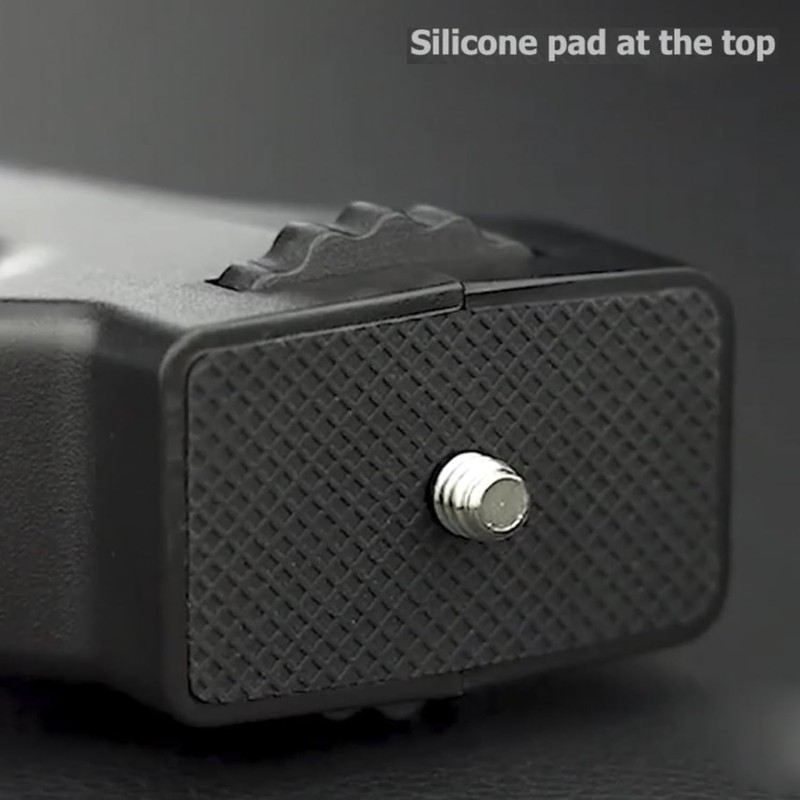 - 1/4" thread for mounting on a tripod, rubberized camera plate