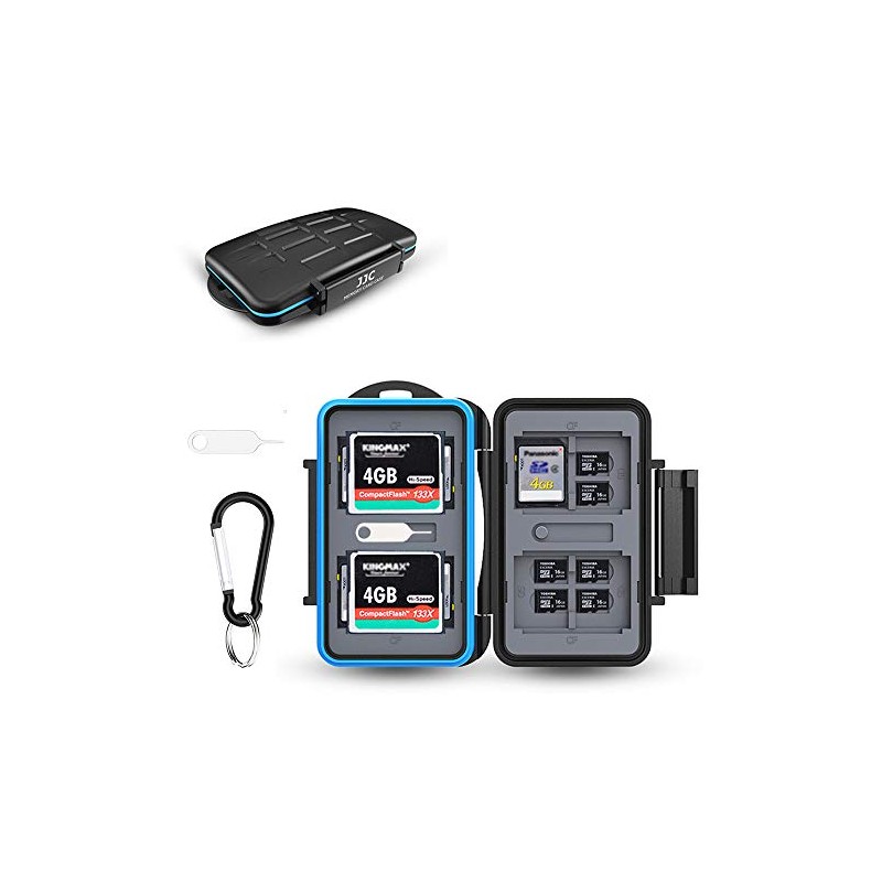 JJC SD Micro SD TF CF Card Case Holder Storage for 8 SD 16 Micro SD & 4 CF Cards Water-Resistant Anti-Shock with Carabiner & Card Removal Tool