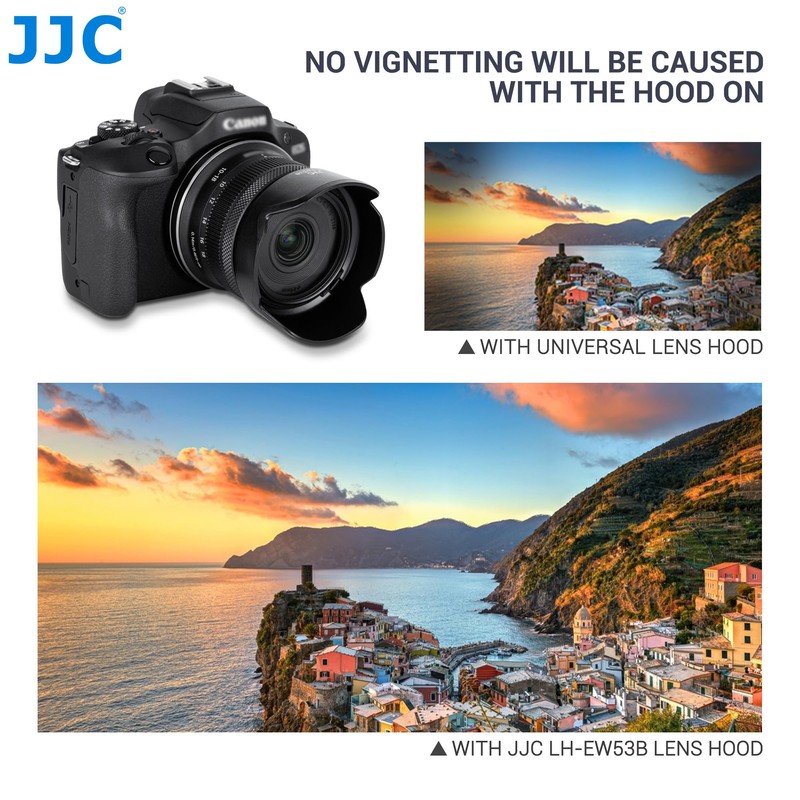 - 【Compatible with】: JJC Shade Reversible Tulip Flower Hood is designed for use with Canon RF-S 10-18mm f/4.5-6.3 IS STM lens (49mm thread), replaces Canon EW-53B. Note*:The hood doesn't affect the use of Ф49mm filters and the original lens cap.