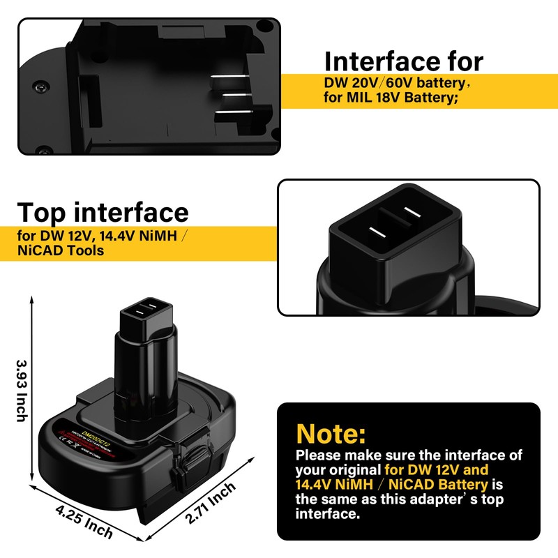 - 1. For Dewalt & for Milwaukee 18V Battery: For Dewalt 20V and for Milwaukee M18 18V battery Convert for Dewalt 12V/14.4V NIMH battery, then it can power for DW 12V/14.4V NIMH tools.