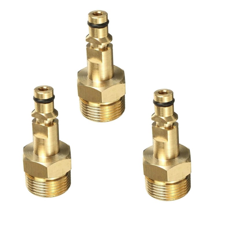 - QUICK-CONNECT DESIGN: Set of 3 brass adapters quick-connect fittings for fast and secure attachment to pressure washer hoses
