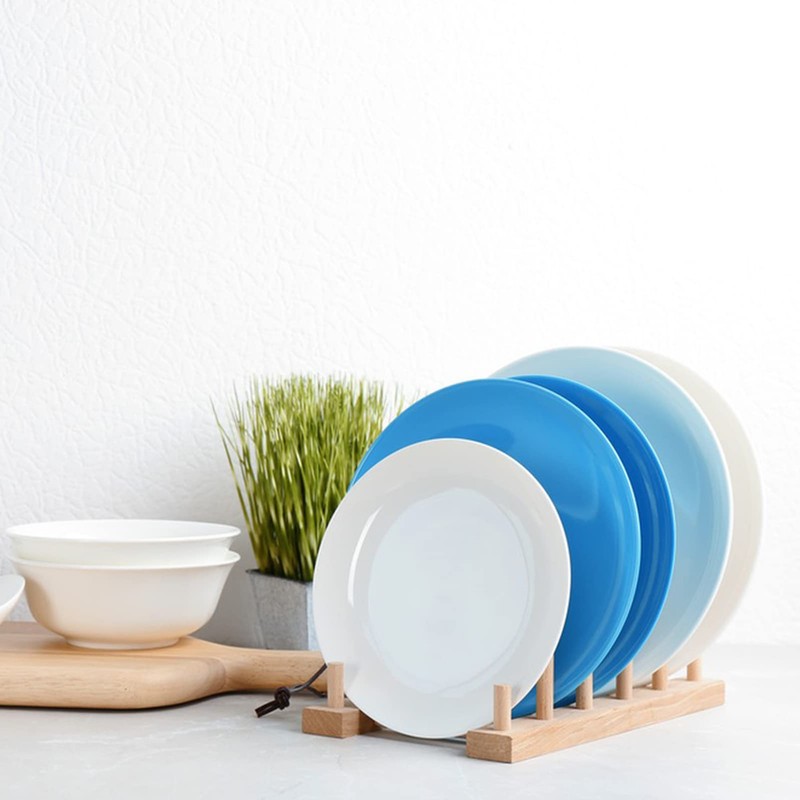 - Hohe Qualität: Der abtropfgestell besteht aus robustem und langlebigem Naturholz mit hervorragender Verarbeitung, die Oberfläche ist glatt und gratfrei und lässt sich nicht leicht verformen. Das halter ist stabil und unterstützt die Teller gut