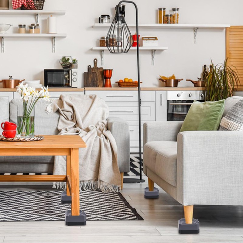 - Riser of 4 cm: each riser measures 8.5 x 8.5 x 4 cm (L x W x H) and fits most furniture legs. You can also combine multiple risers to fit wider furniture legs. Simply elevate your washing machine, sofa or armchair to create extra space under your furniture for storage or access to clean.